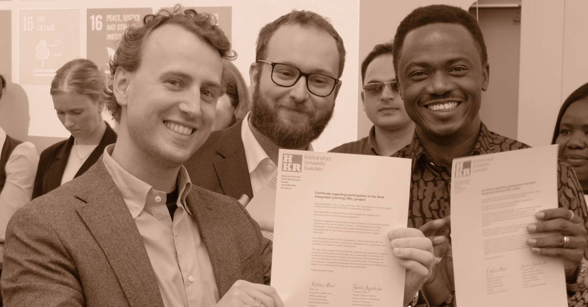 At Kristianstad University’s Sustainability Day on January 28, 2026, master’s students Marcus Månsson, Marco Ferrari, and Albert Baah Essuman presented their case study of Rosenqvists Food Technologies.
